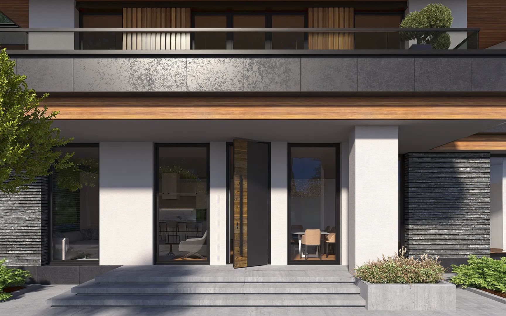 Наши двери идеально сочетаются с системами остекления Exterhaus, создавая единый архитектурный облик.